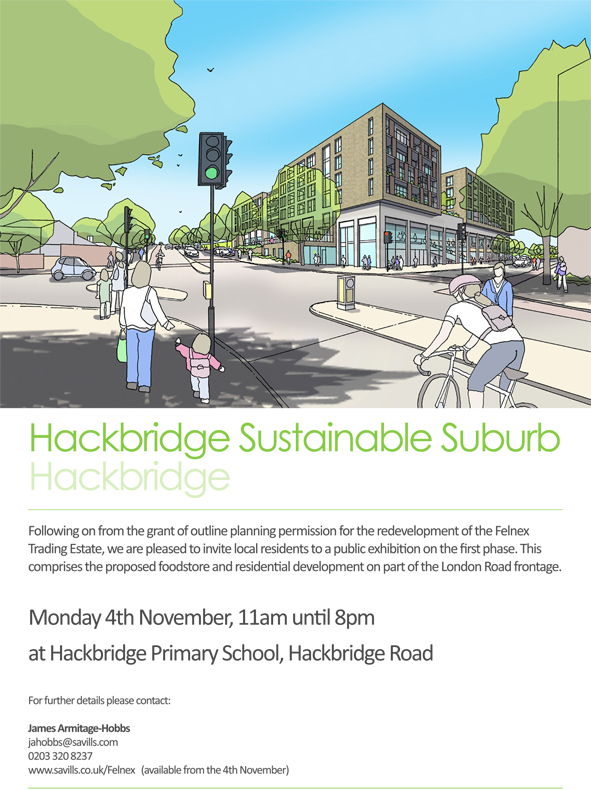 Savills are doing a consultation event on Monday 4 November from 11am to 8pm at Hackbridge Primary School to discuss the proposals for the Felnex Estate.
