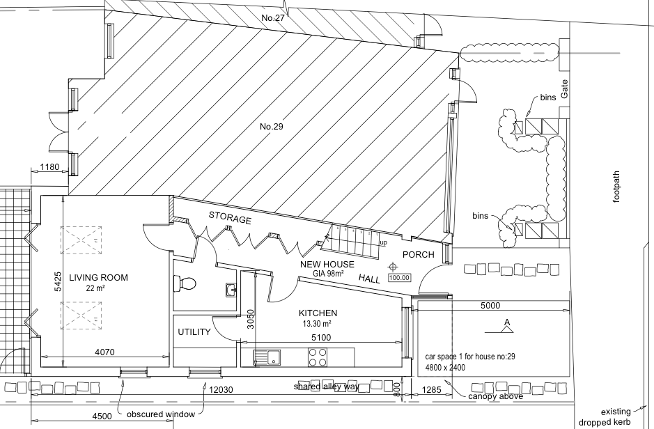 Planning application DM2020/00050 has been submitted for the erection of a 2-bedroom, two storey end of terrace house, attached to 29 Hackbridge House.