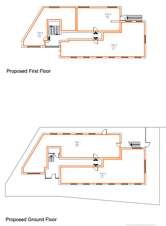 Out of interest we compared the approved 5 unit application to the proposed 6 unit and you can see how tiny Flat 4 on the approved application will be (left picture, first floor). By wanting an additional unit, they are having to replicate this design, meaning a tiny unit on both floors in the new layout.