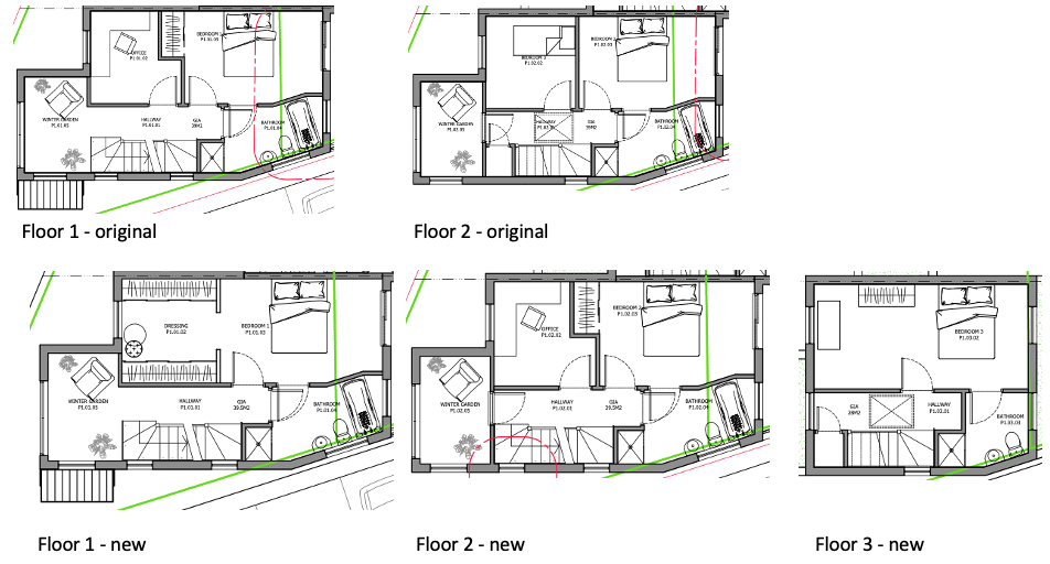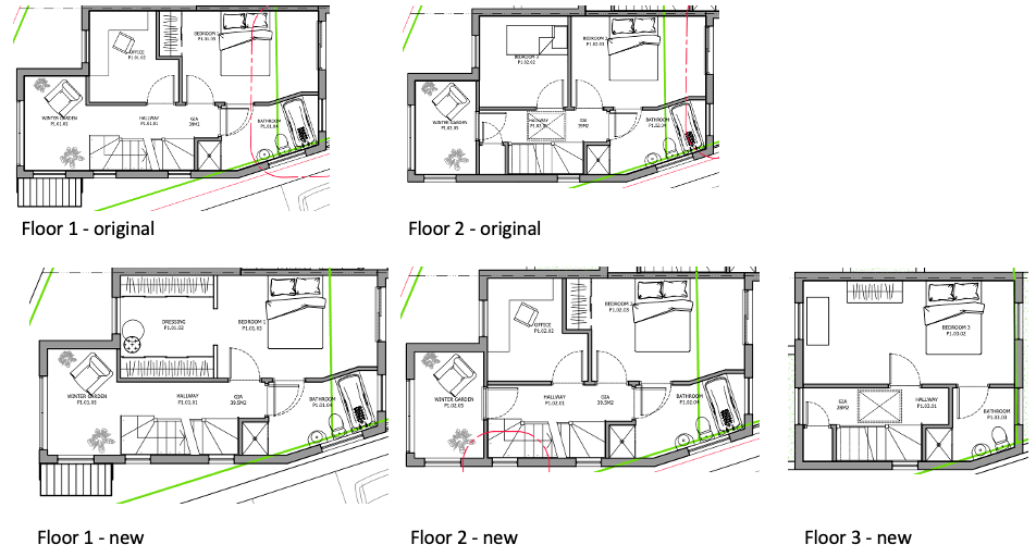 - Floor 3 – additional 4th floor to accommodate bedroom 3 and a bathroom