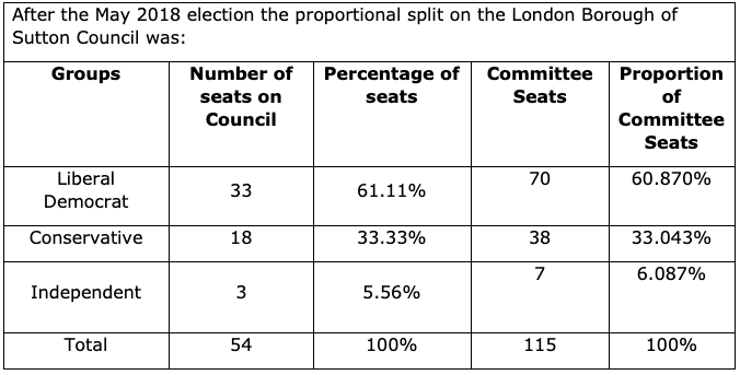 Is it right for Sutton Council to have a larger percentage of Liberal Democrat councillors on its decision making committees, than they won in the May elections?