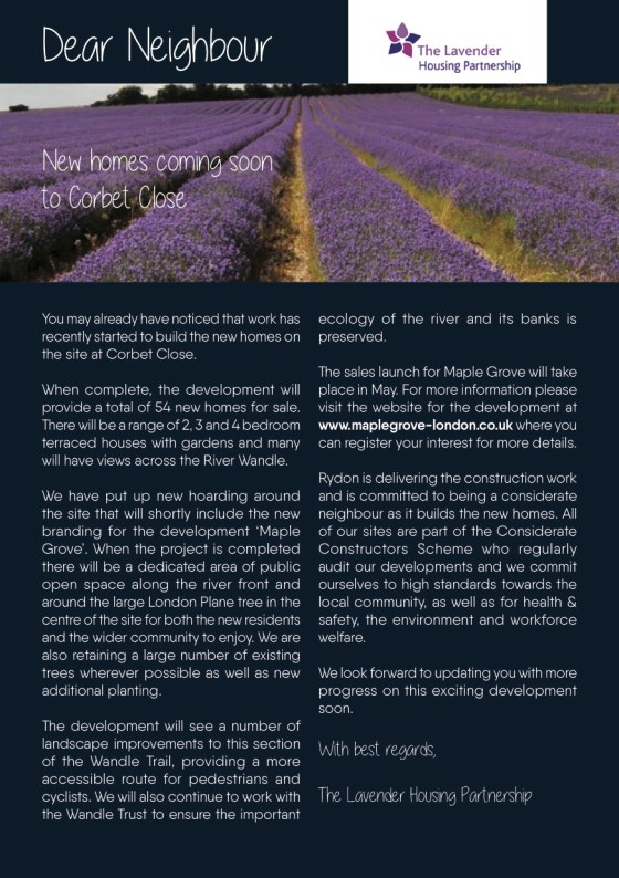 Please find below the latest update from The Lavender Housing Partnership on the housing development on Corbet Close.